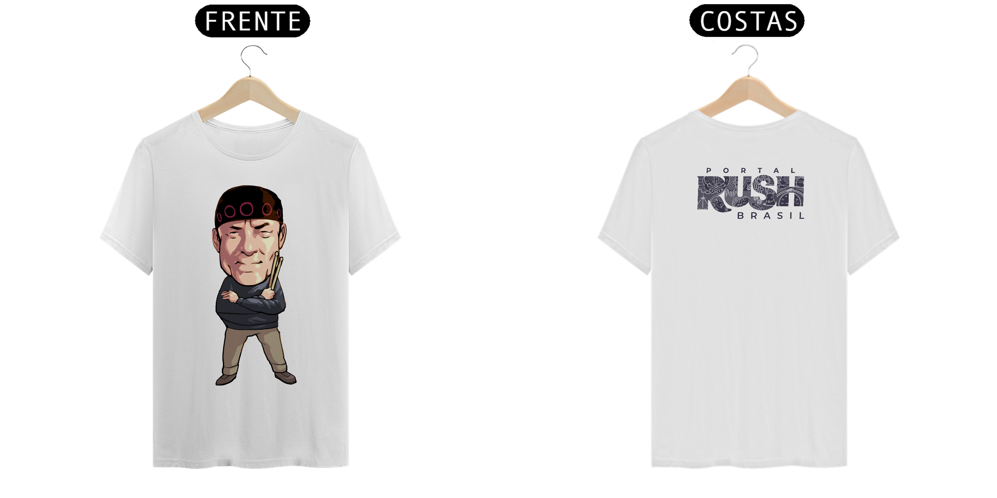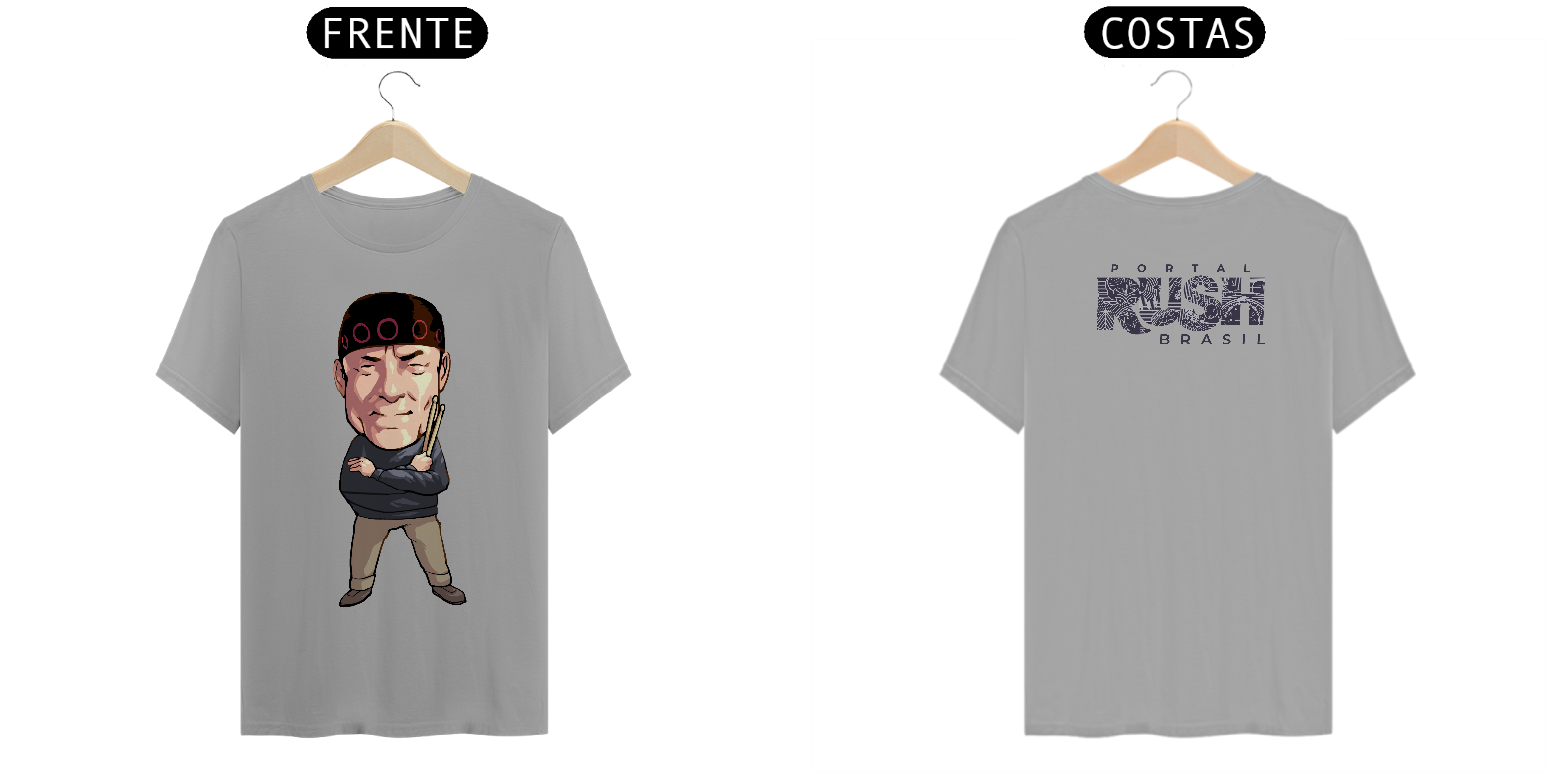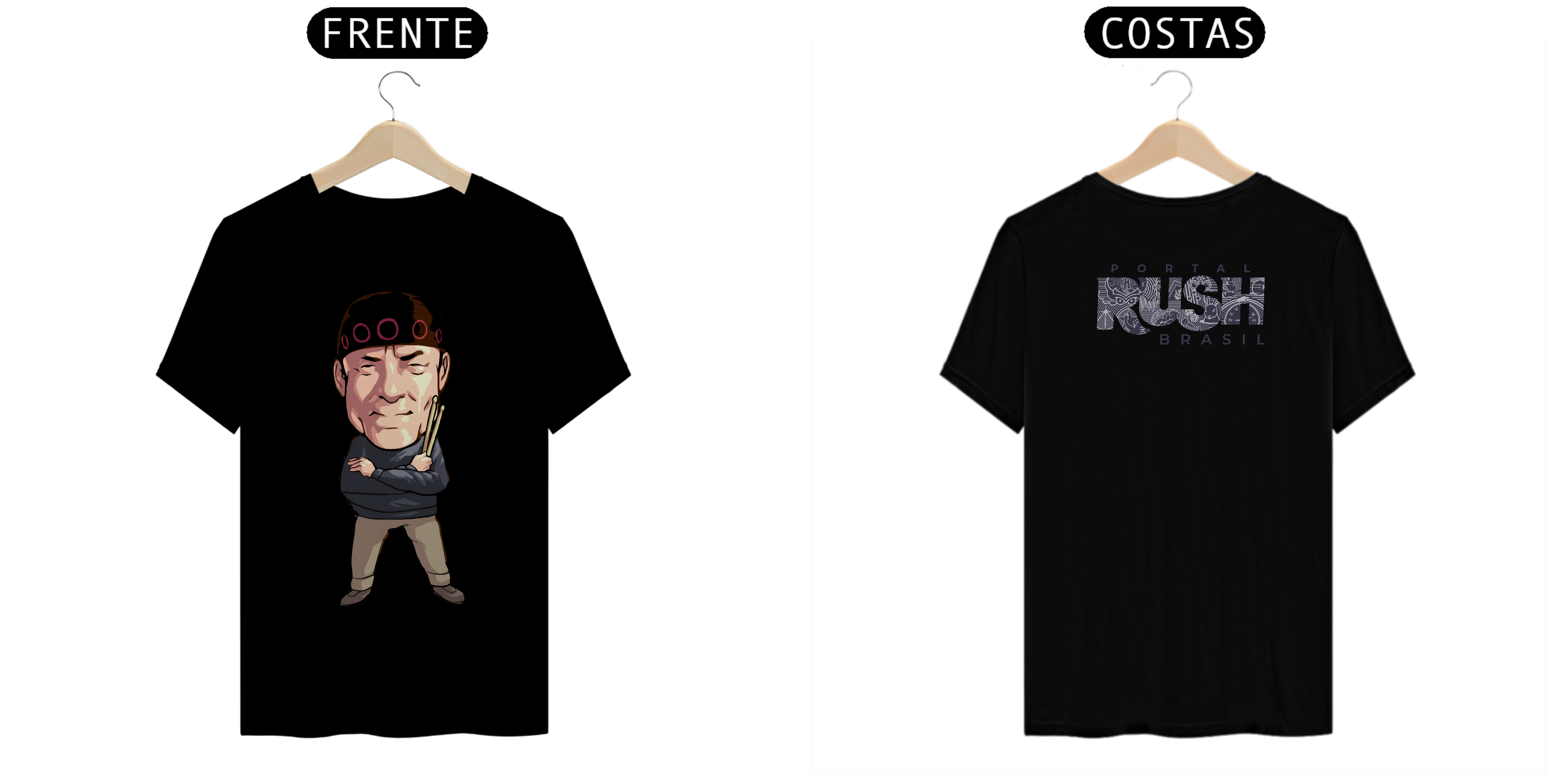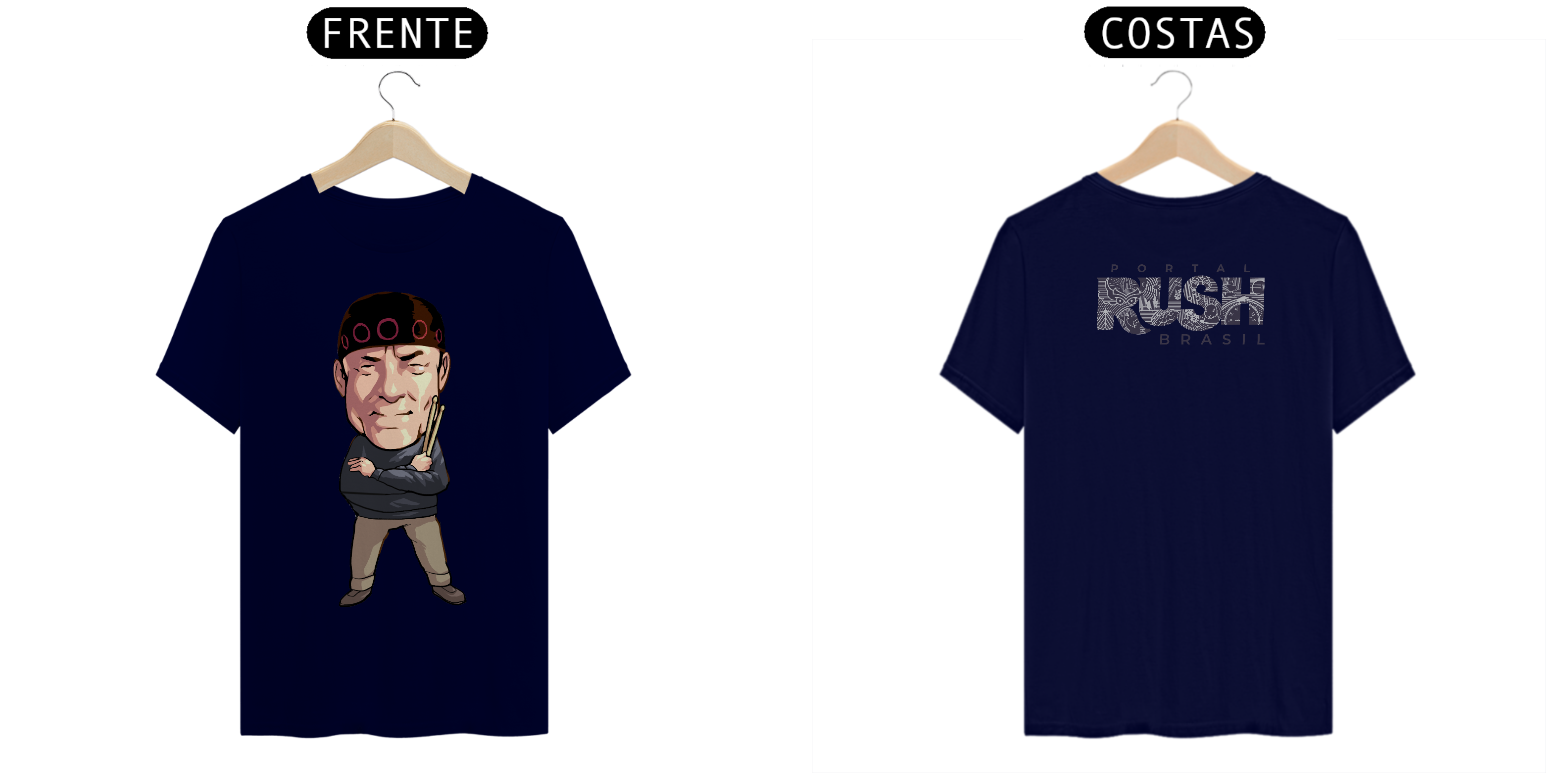 Camisa de caricatura do baterista Neil Peart. Leia mais sobre a vida de Neil em nosso artigo: